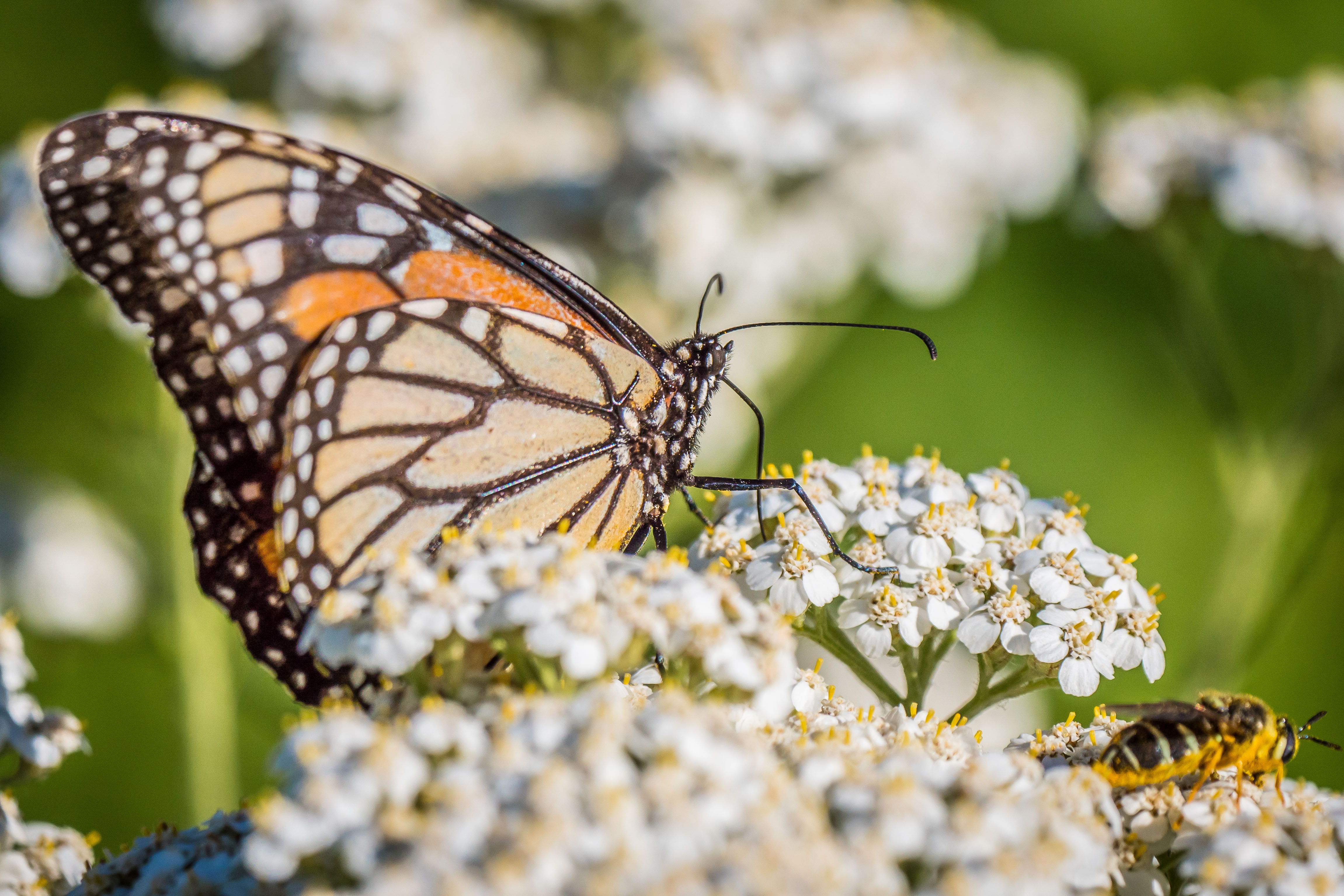 Whenever we get a bit of sunshine the pollinators get busy doing their thing. The very small insects, including hoverflies and skippers don’t seem to be deterred by rain.