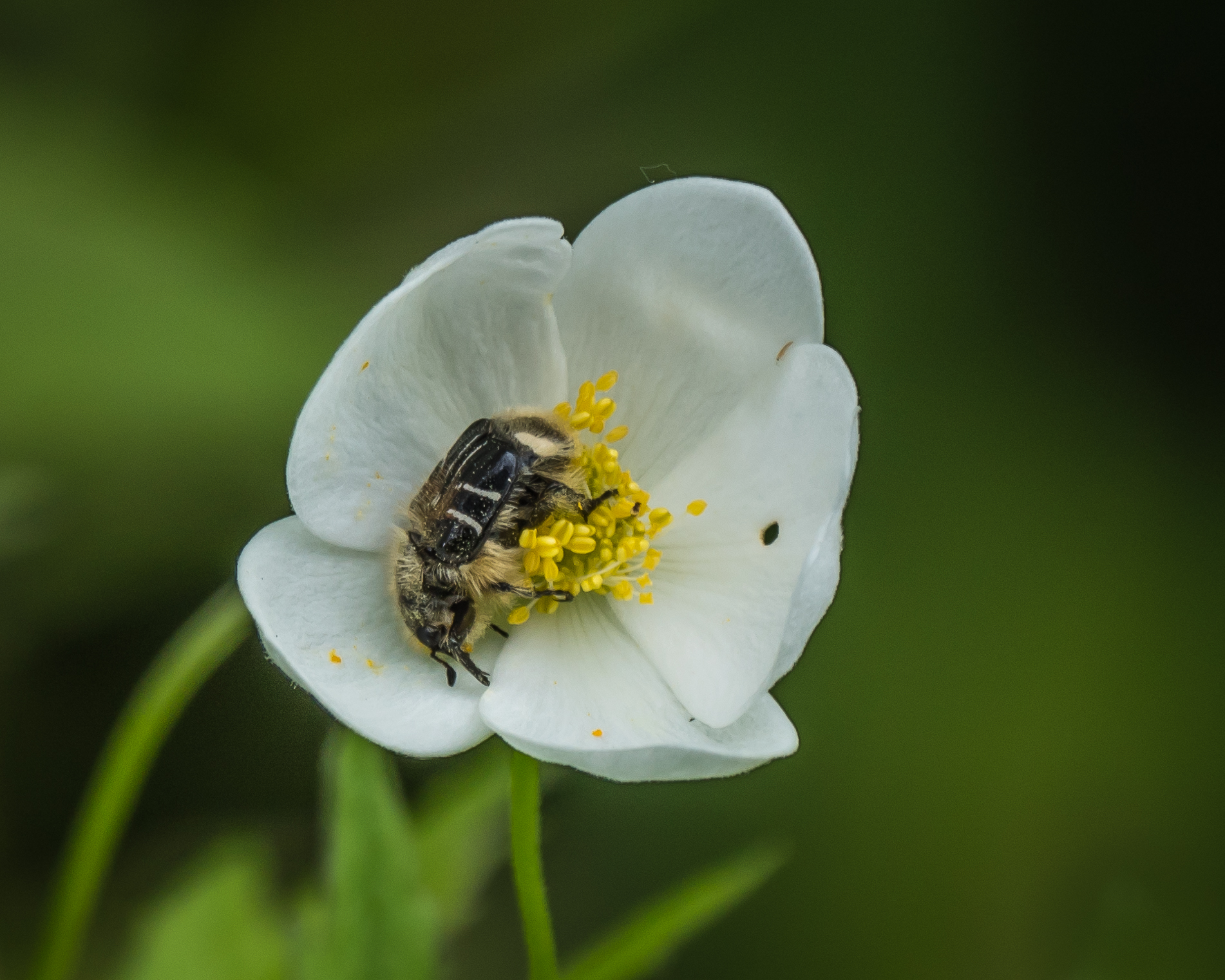 A critter in the last of the Canada Anemones …