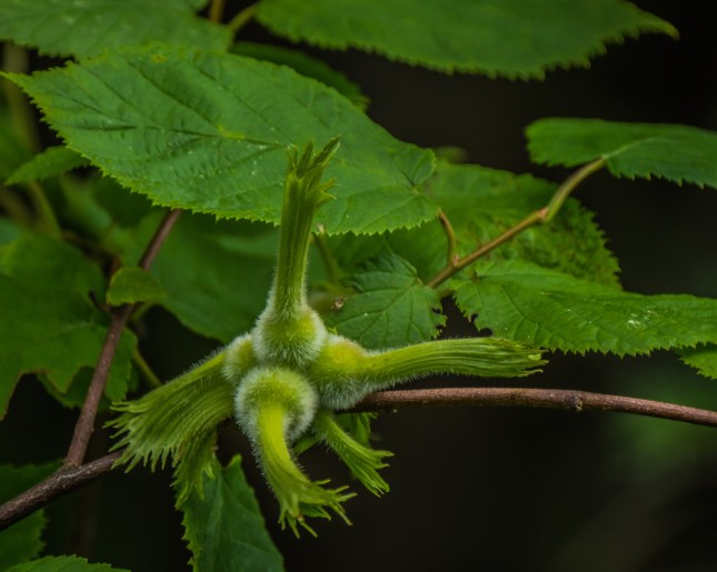 Remember those beautiful little flowers in April, about the same time as Red Maple? Yes! Corylus cornuta that will be ready to harvest in a month.