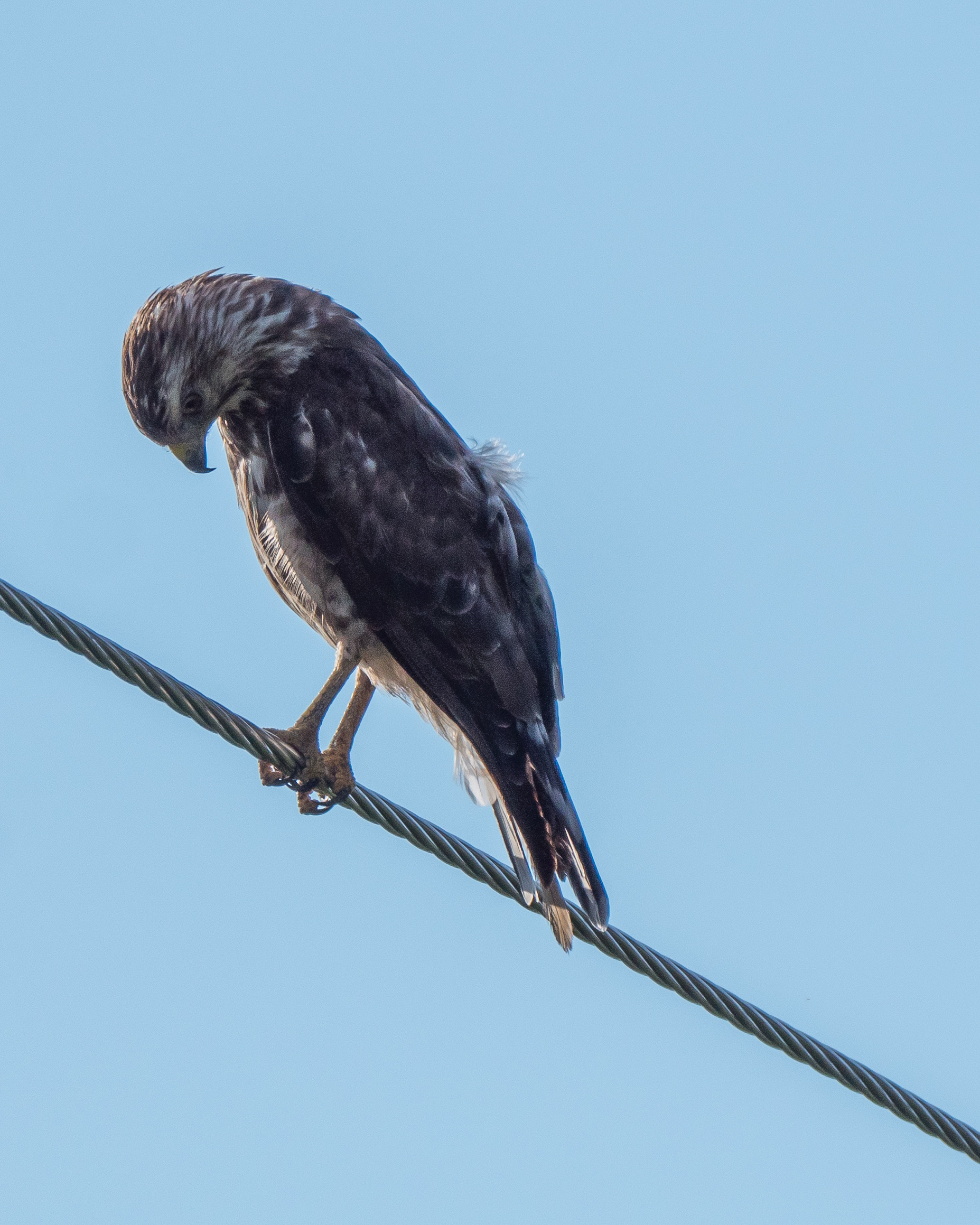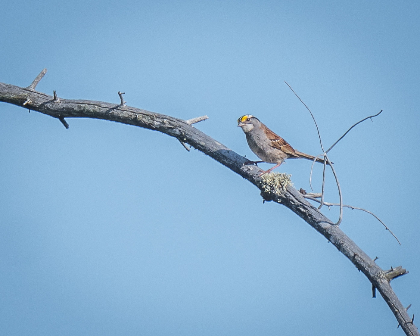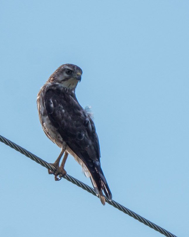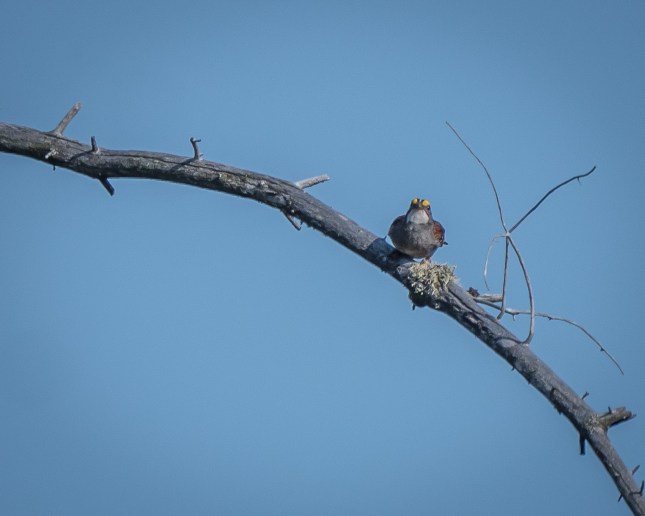 … when all of a sudden this birdie flew into view and then took off with my first shutter click. I calculated that the encounter (find bird in viewfinder: 1 second +; Autofocus: .3 second, release shutter: .3 second) took a total of <2 seconds to this point. within the next second the bird had braced for take-off, launched and disappeared. I know that because I was shooting in (Medium) Burst mode. This birdie doesn’t hang around singing like its spouse does!
