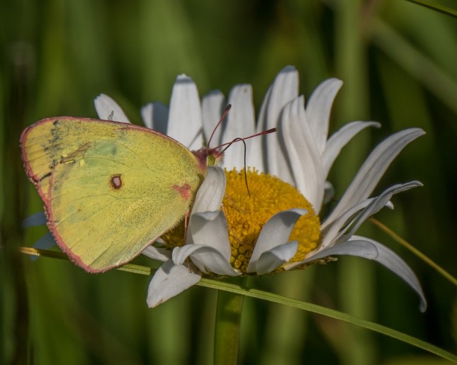 Some critter(s) have been harvesting these blueberries. And Pink Edged Sulphurs have been laying eggs on the leaves of these Vaccinium.