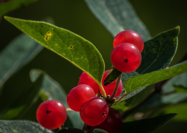 Big crops of cultivar Honeysuckle berries at Burwash….