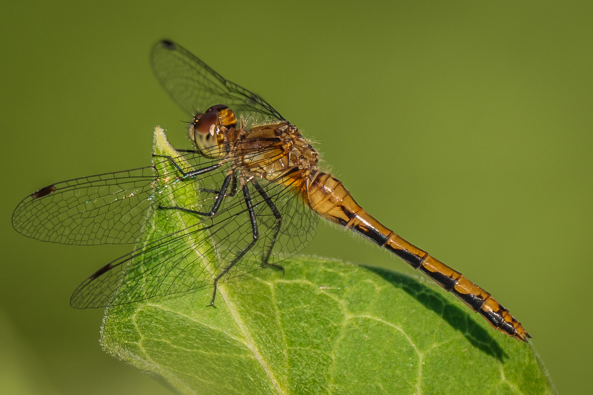 This might be a female White-faced Meadowhawk(?) resting on a milkweed leaf…