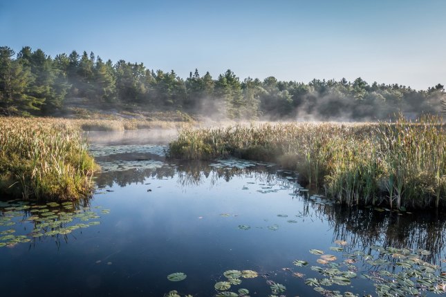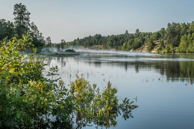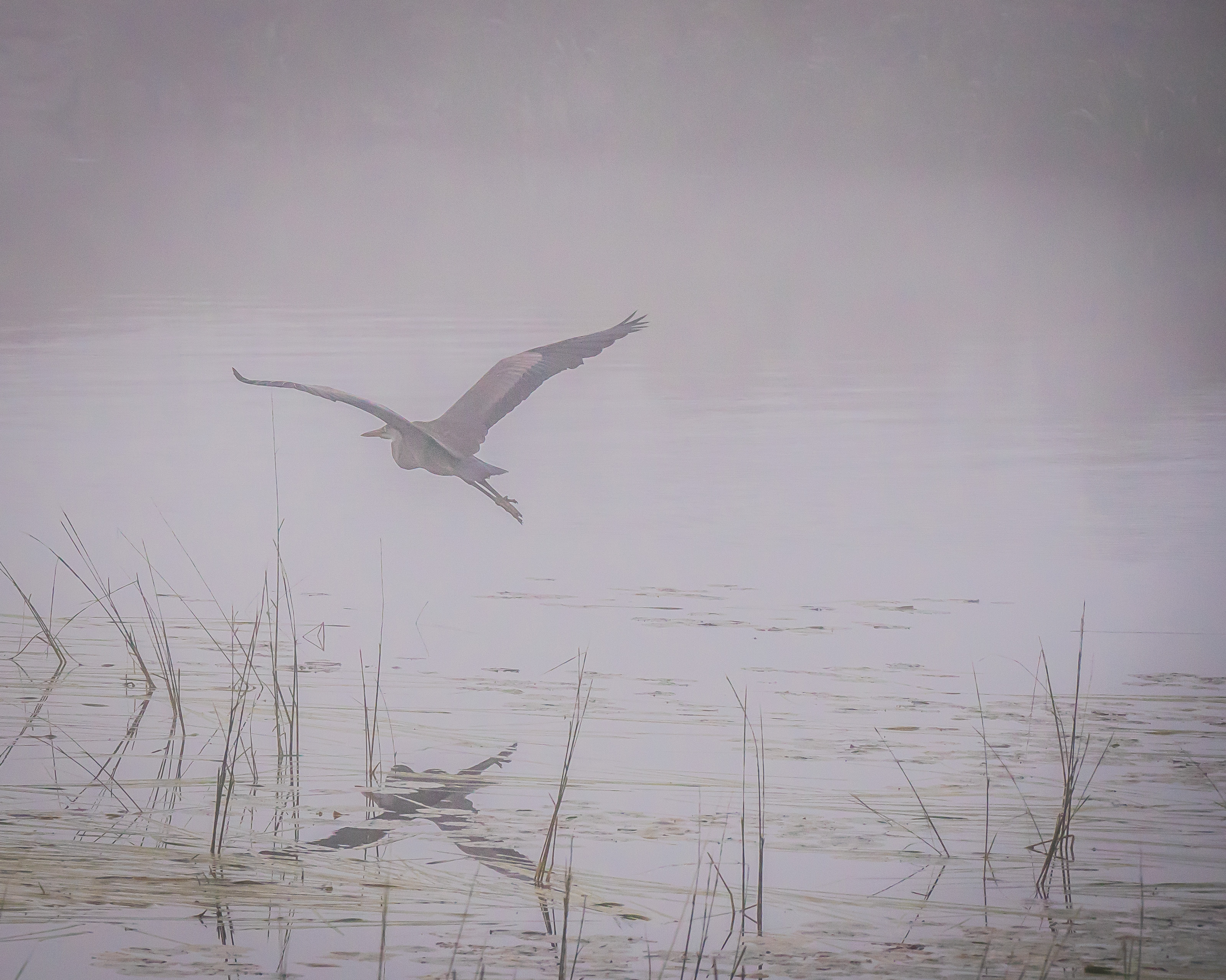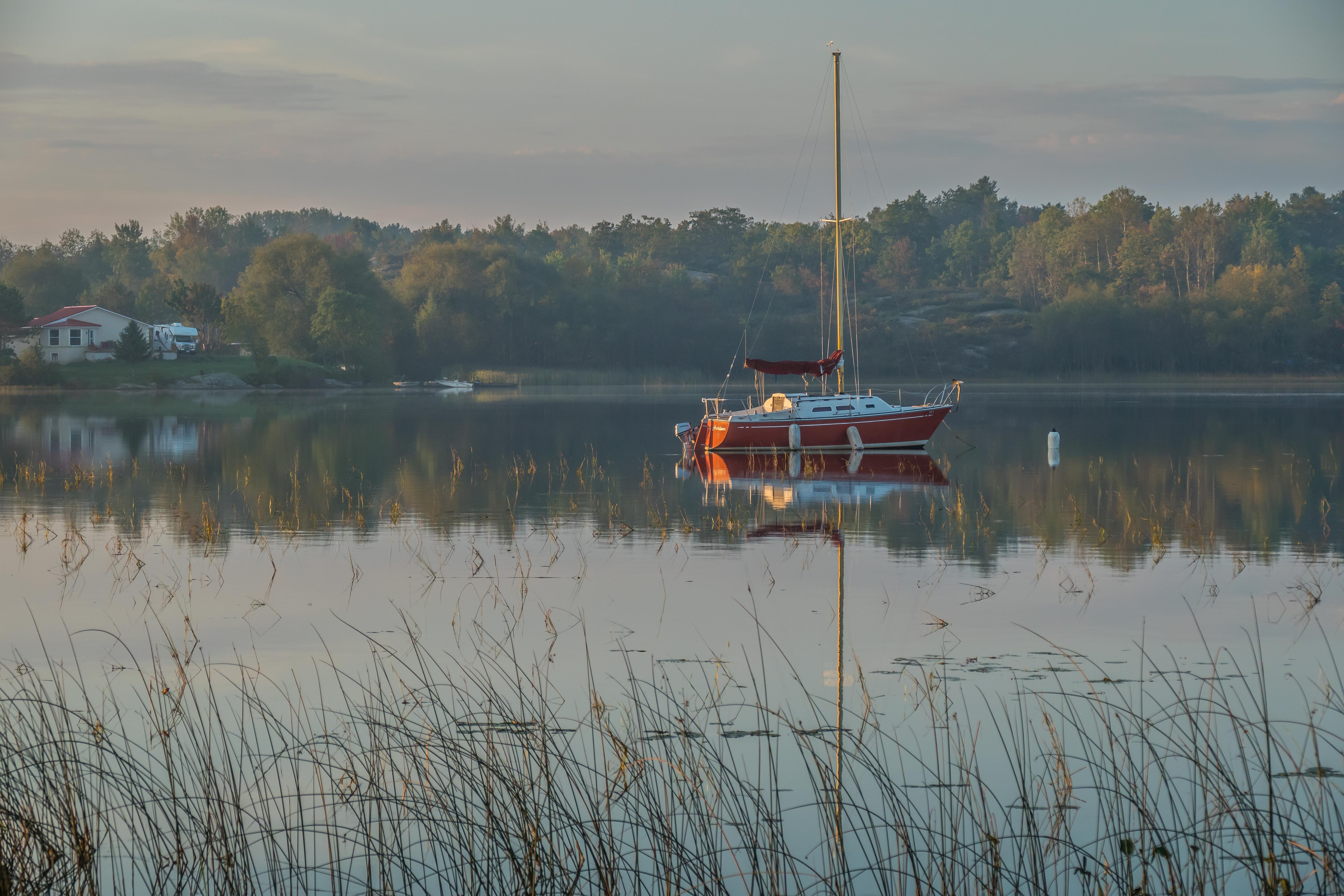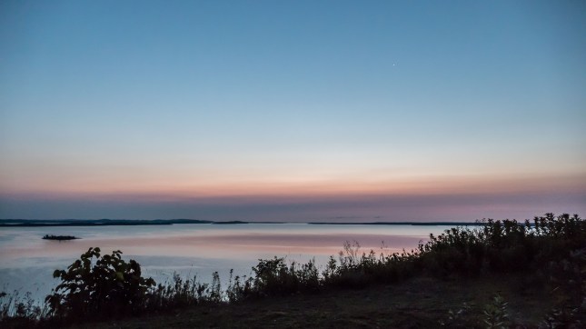 The fog was being “burned off”, evaporated into water vapour, by the morning sun as we looked out over Byng Inlet from in front of Keith’s place on Riverside Road…