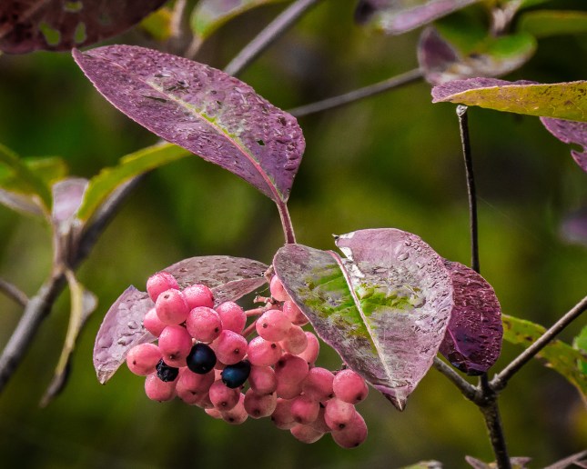Finally the fog cleared, leaving dew-moistened autumn leaves for the photographer to enjoy and share.