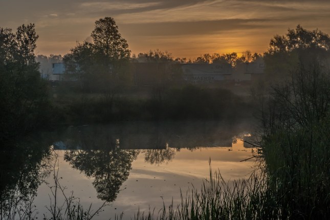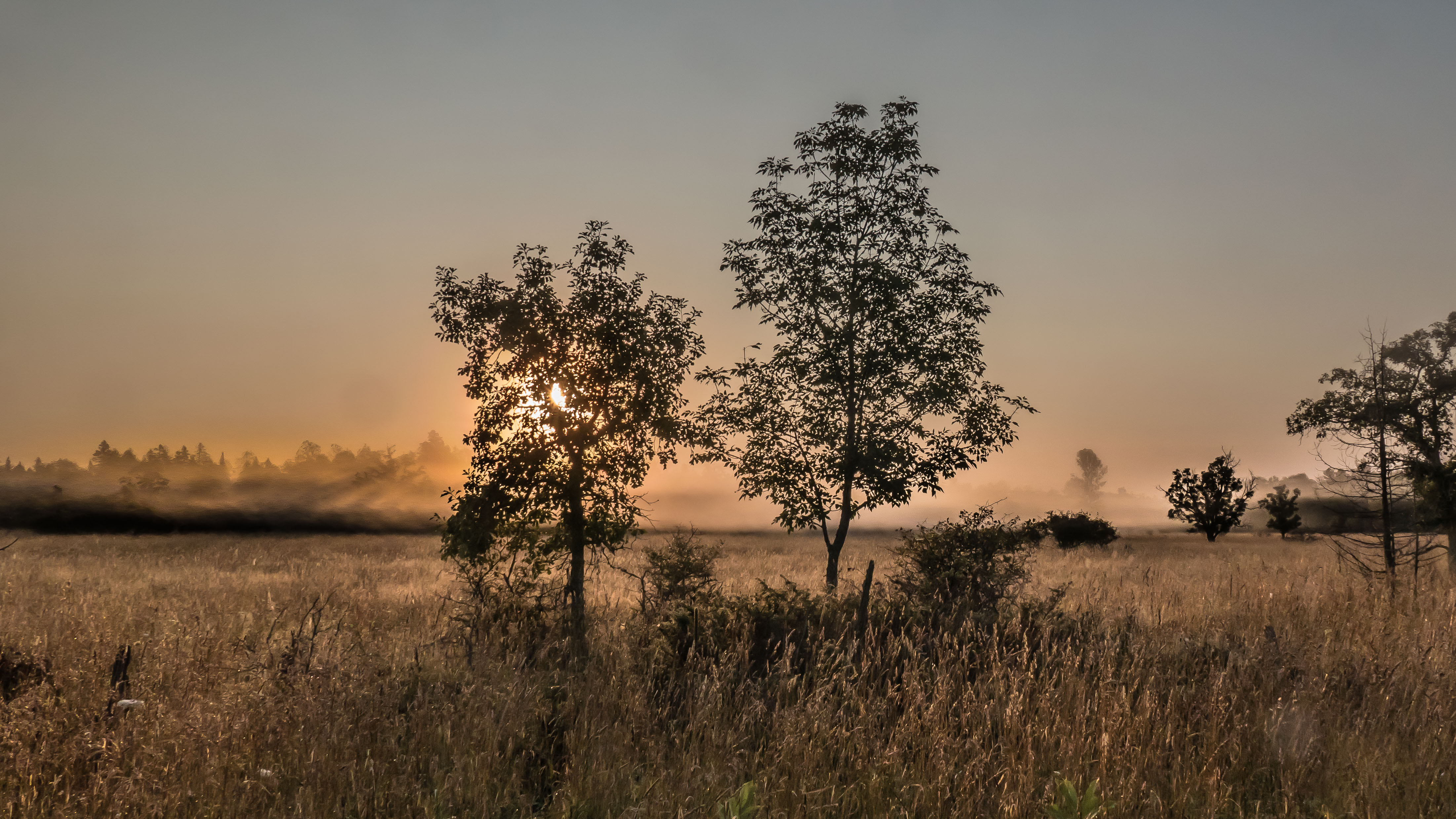 Even in bright morning sunshine haze remained over swamps and valleys.