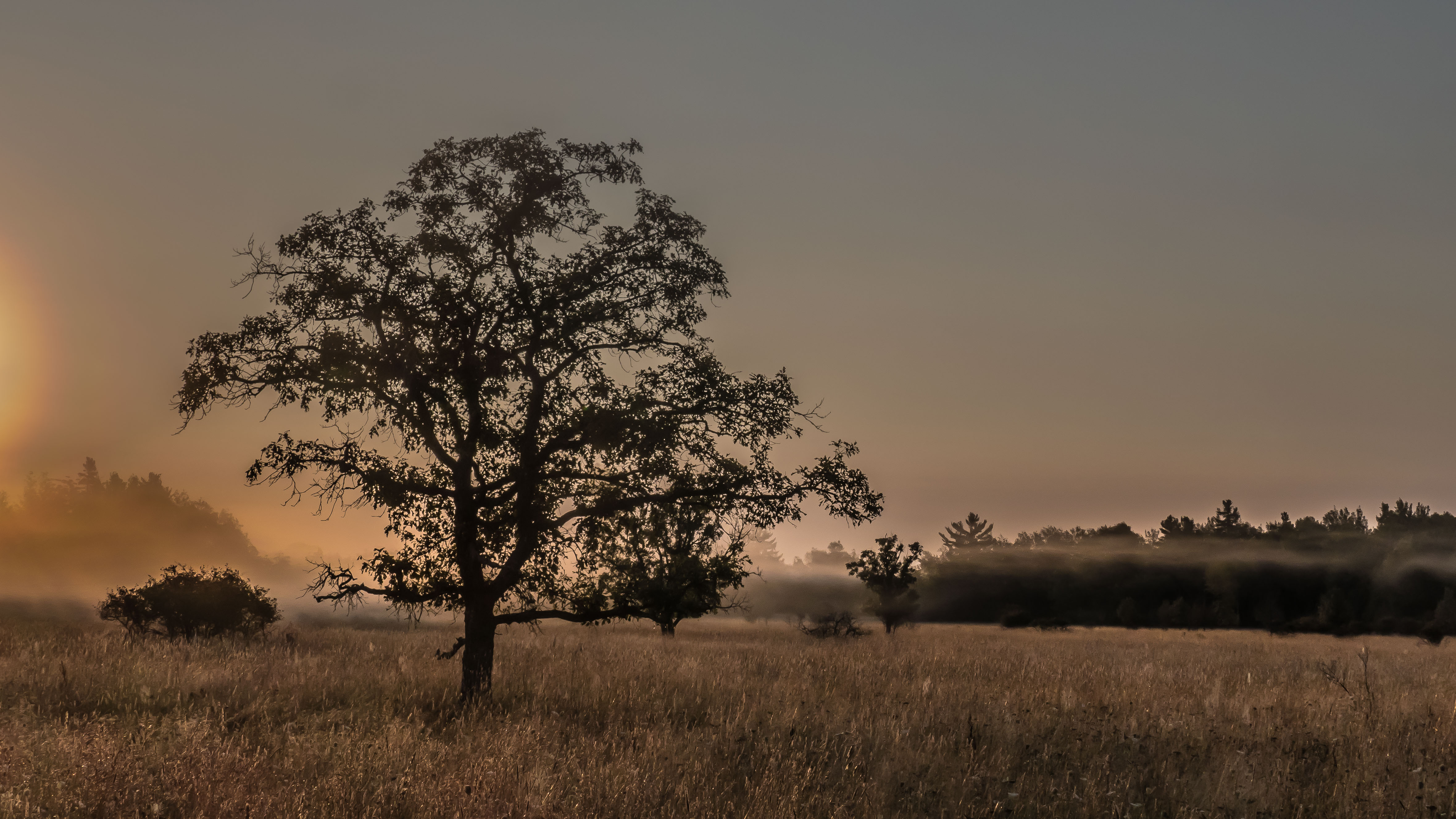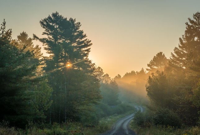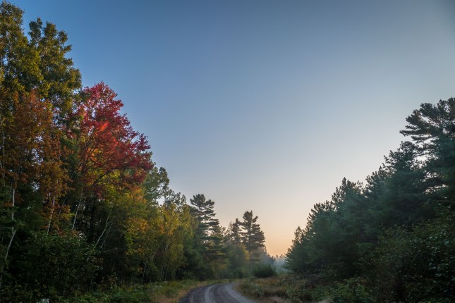 On the following morning, under similar weather conditions, we drove along the Forest Access Road, encountering these scenes of the morning sun illuminating radiation fog.