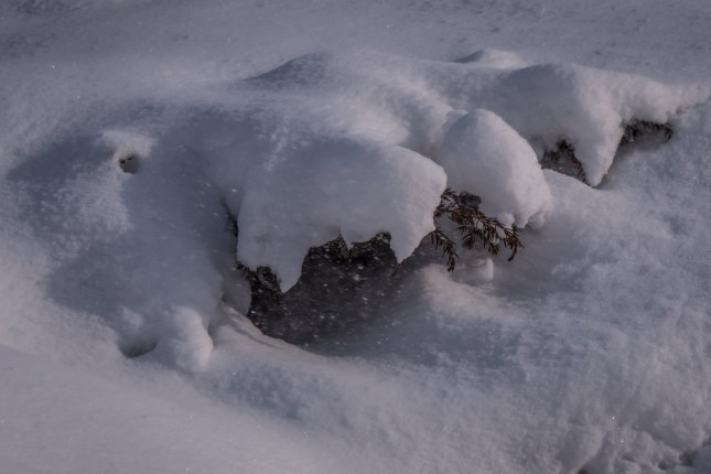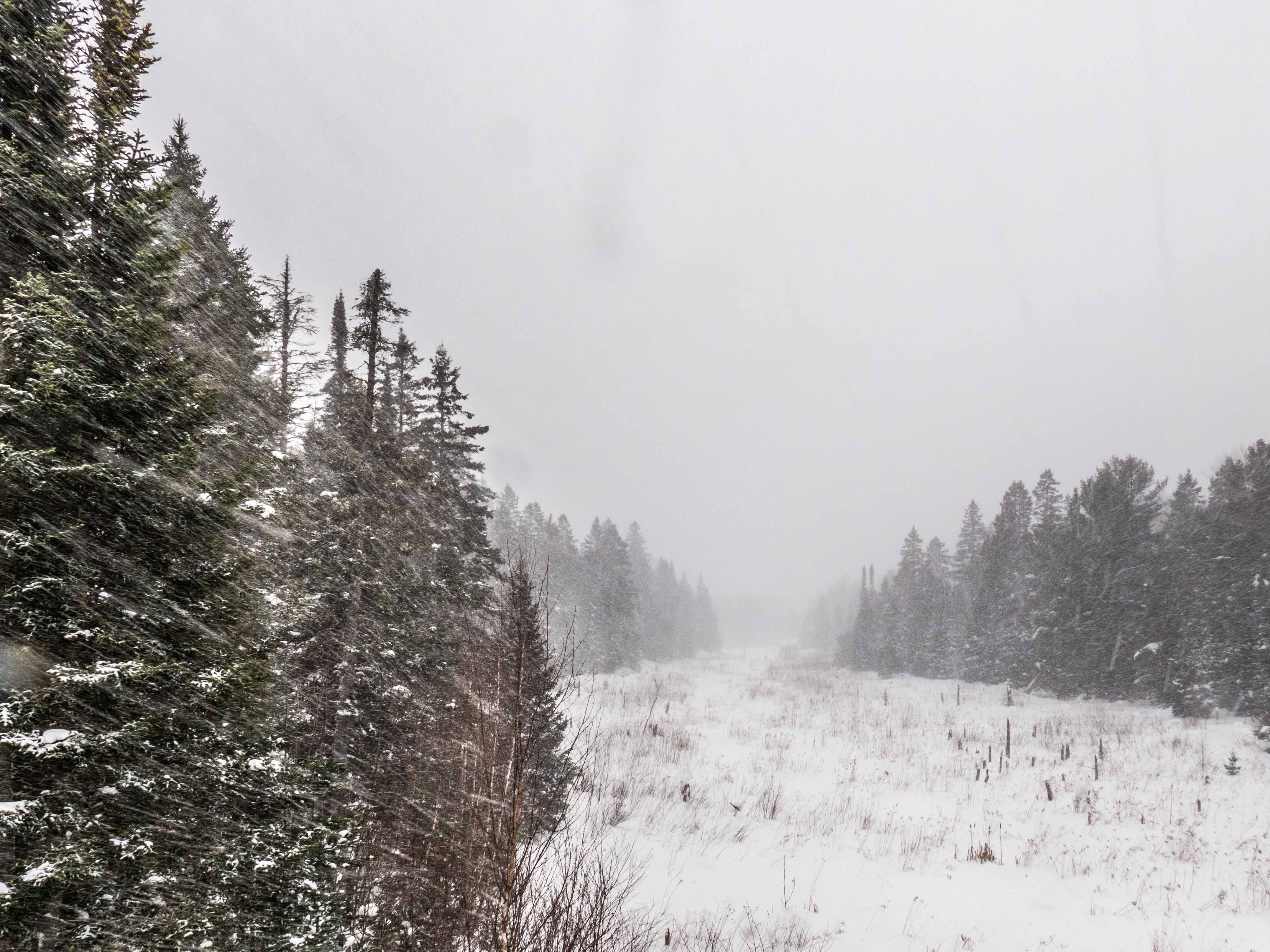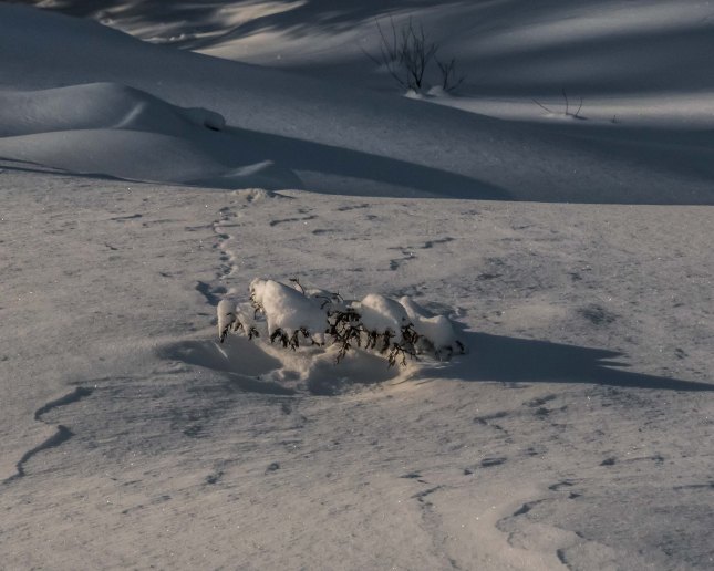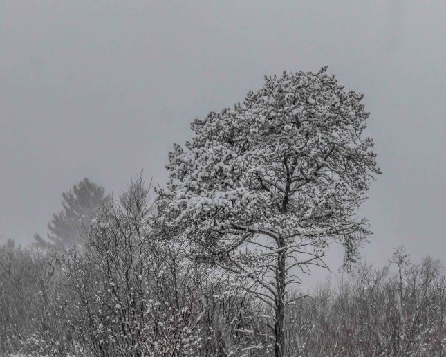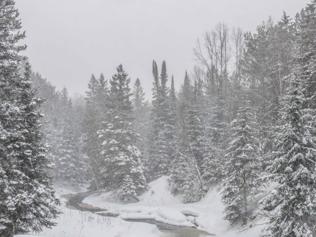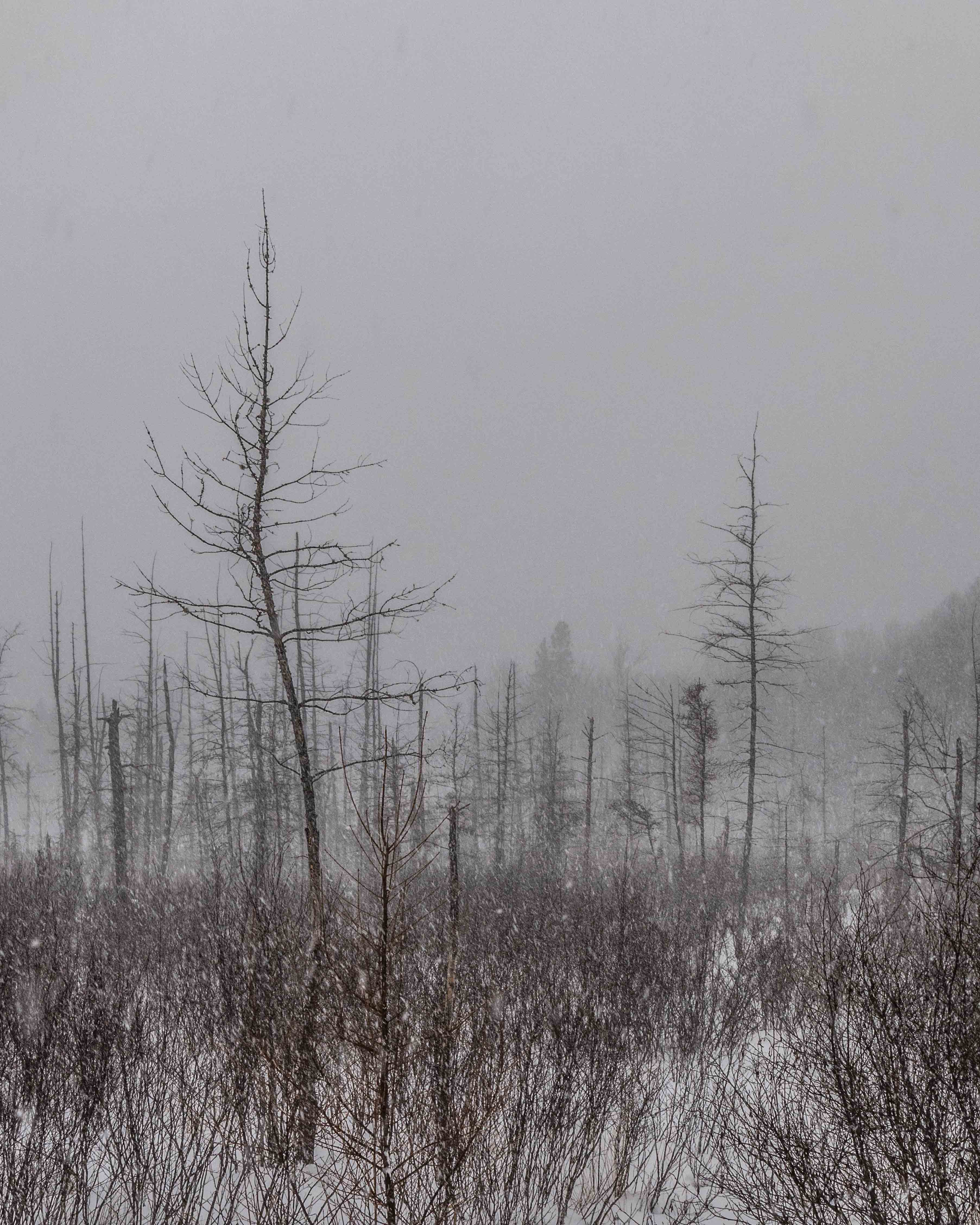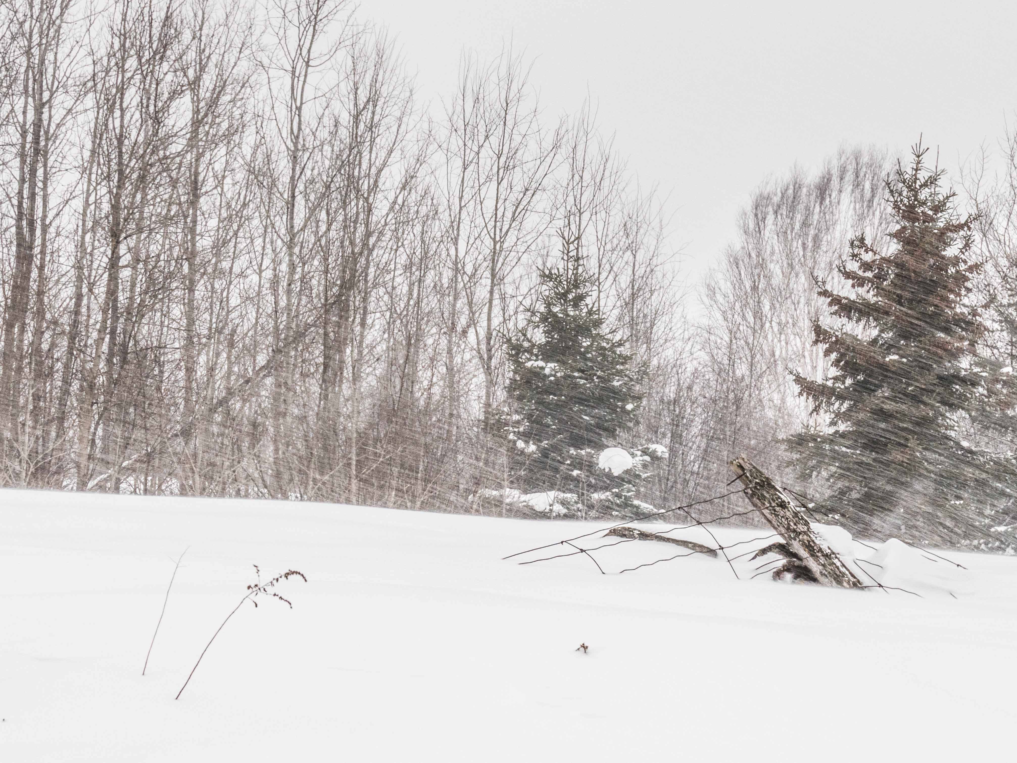 We practiced making pictures of falling snow, trying to capture the mood of the action. Focus mid-foreground. Longish shutter interval depending on windspeed driving the snow. Capture as much light as possible. I try to use ETTR generally.