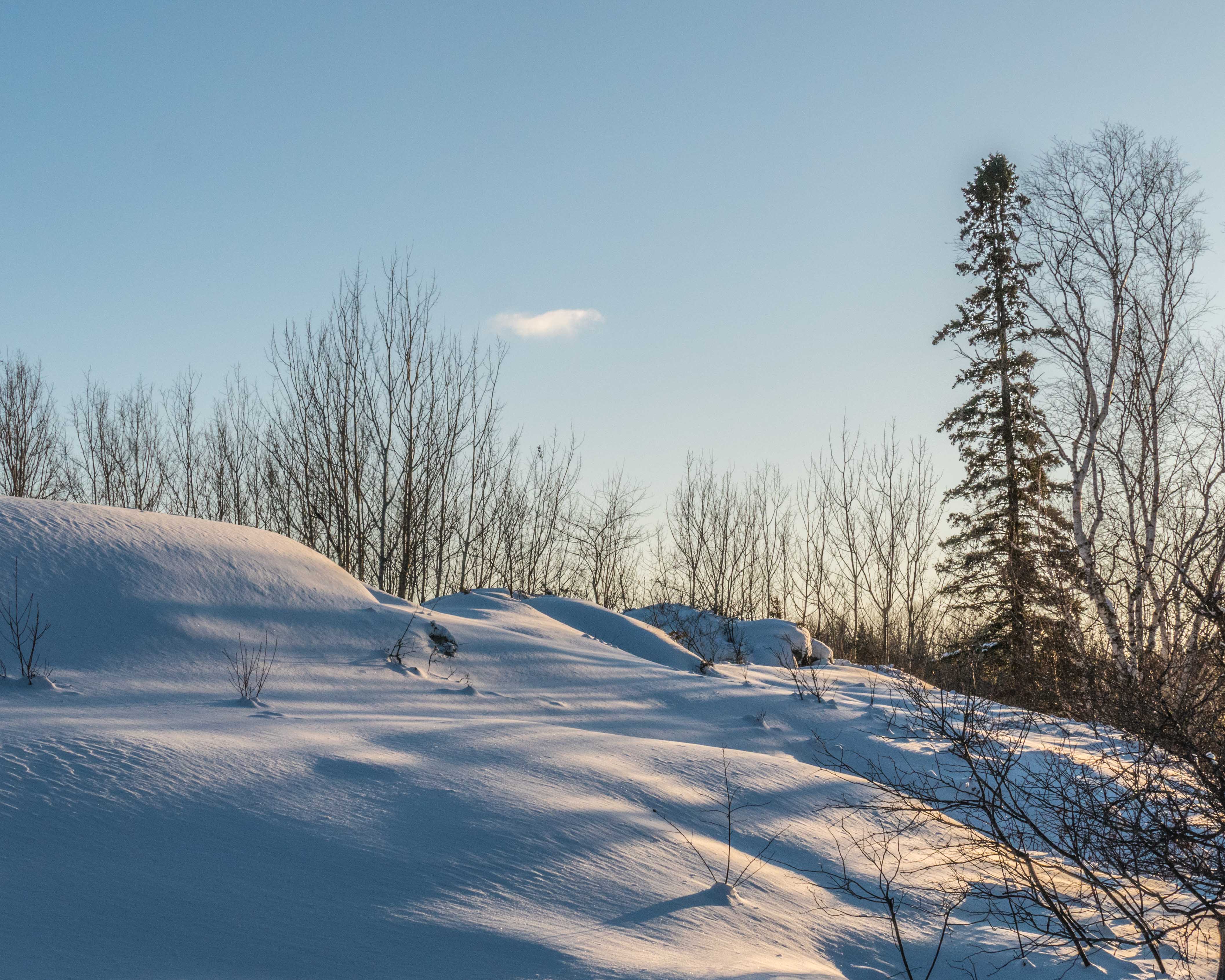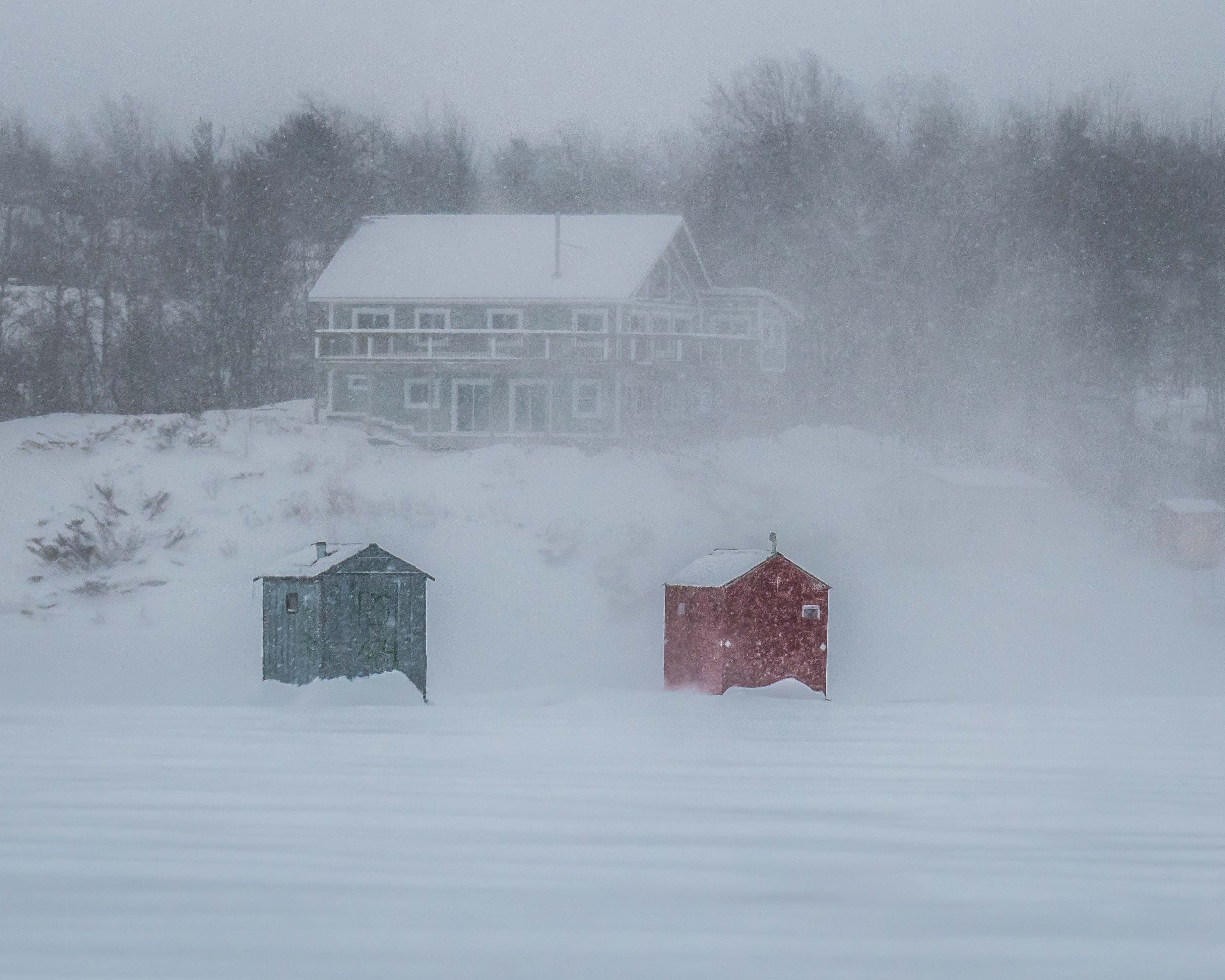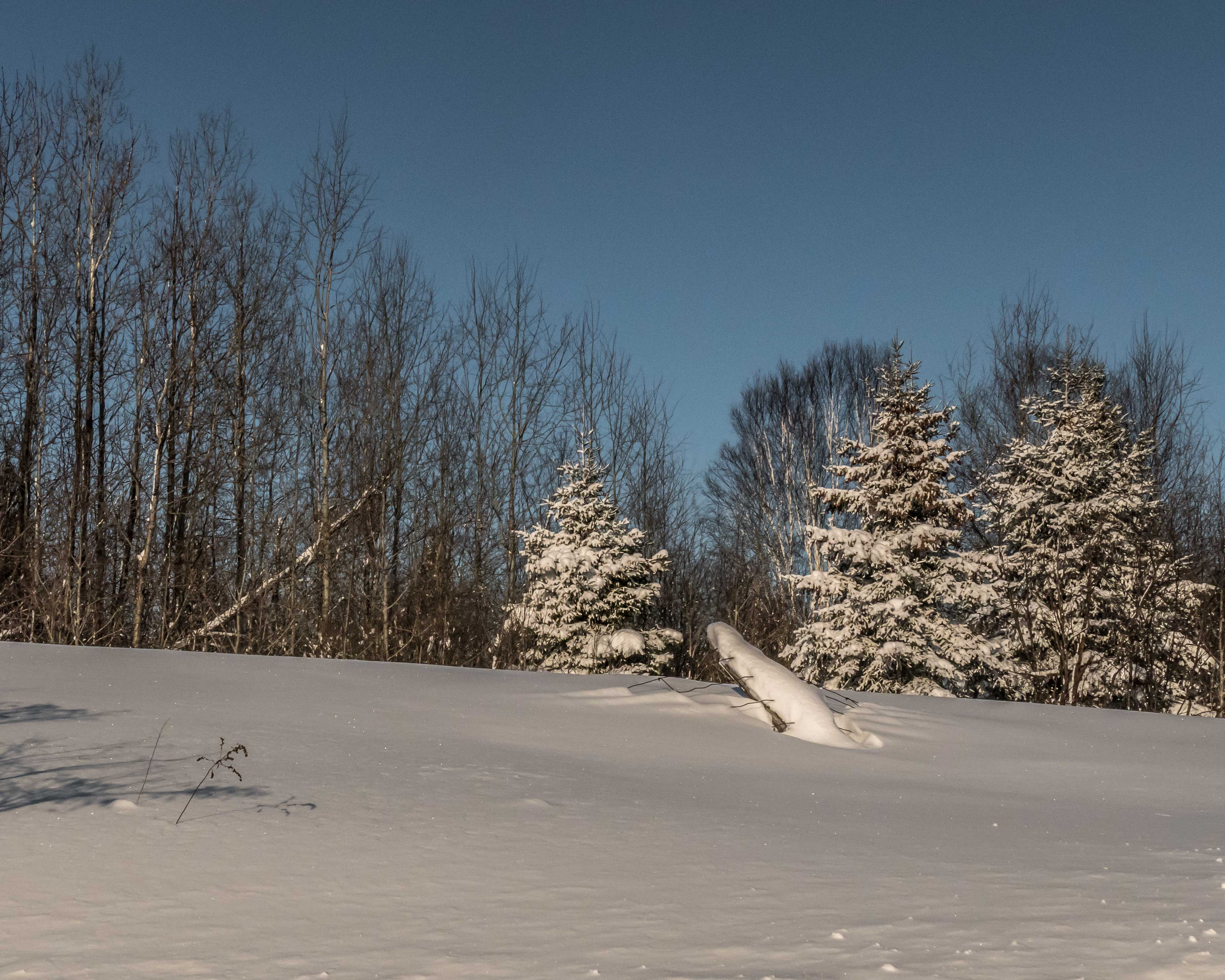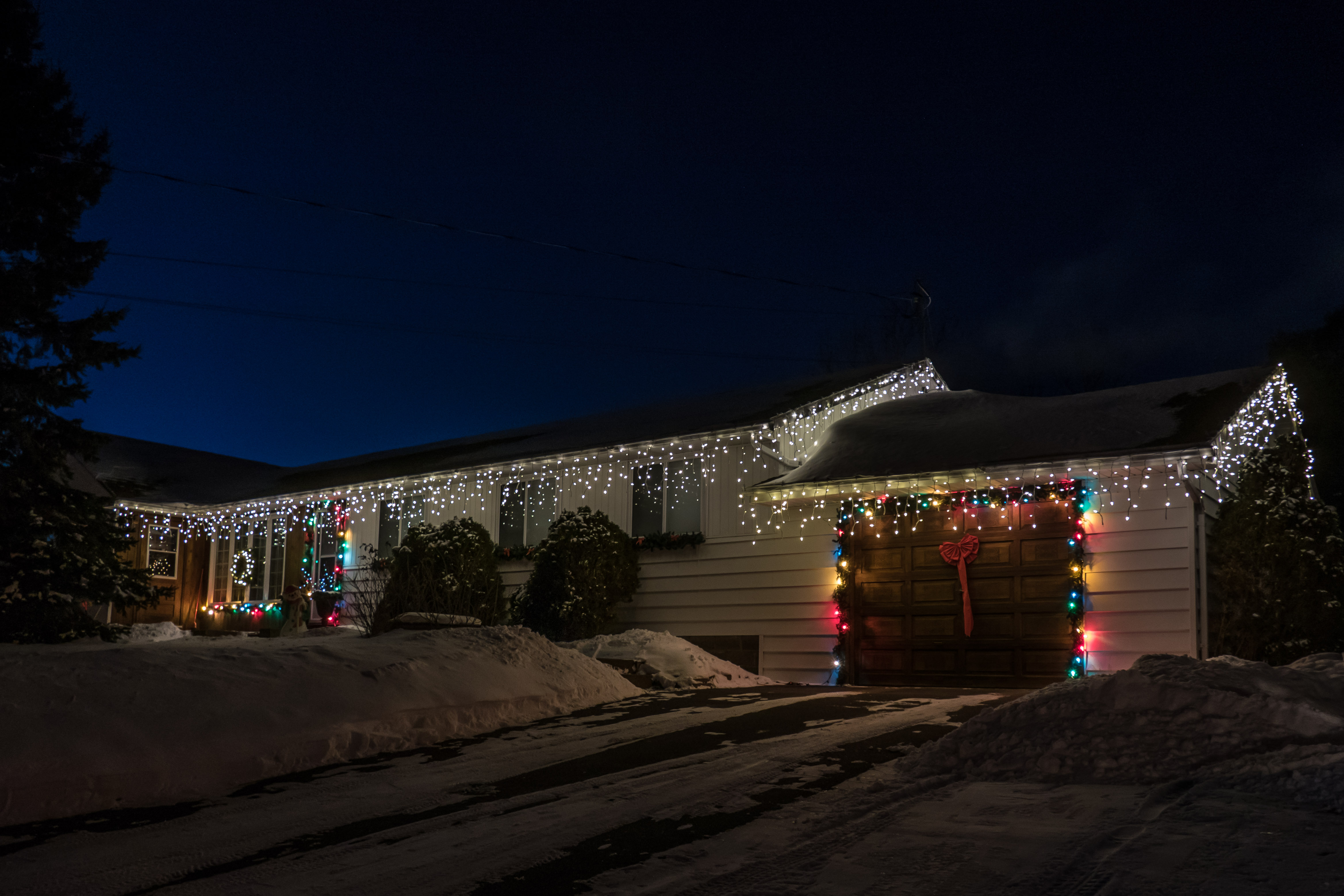 We practiced making pictures of falling snow, trying to capture the mood of the action. Focus mid-foreground. Longish shutter interval depending on windspeed driving the snow. Capture as much light as possible. I try to use ETTR generally.