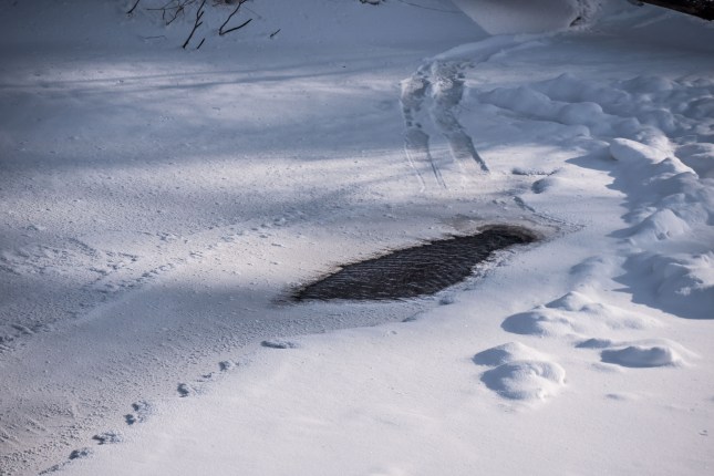 On the day after the storm little critters left tracks as they scurried from shelter.