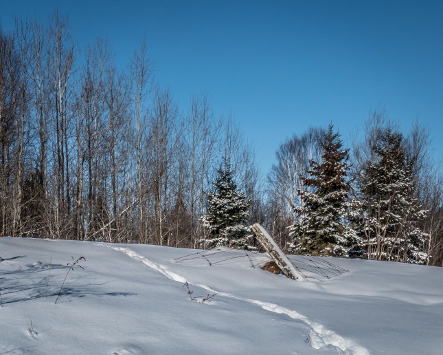 On Still River Road Niffen’s fence post still points at a spruce tree.