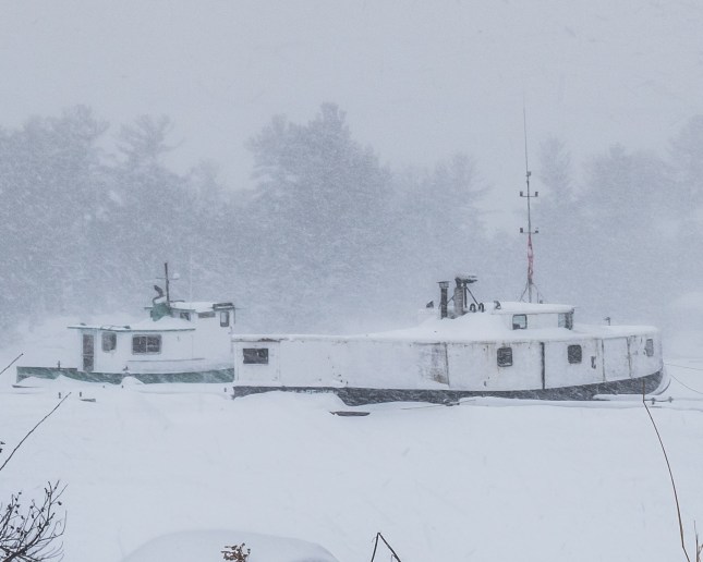 Two fishing tugs resting at Bayfield Inlet for the winter.