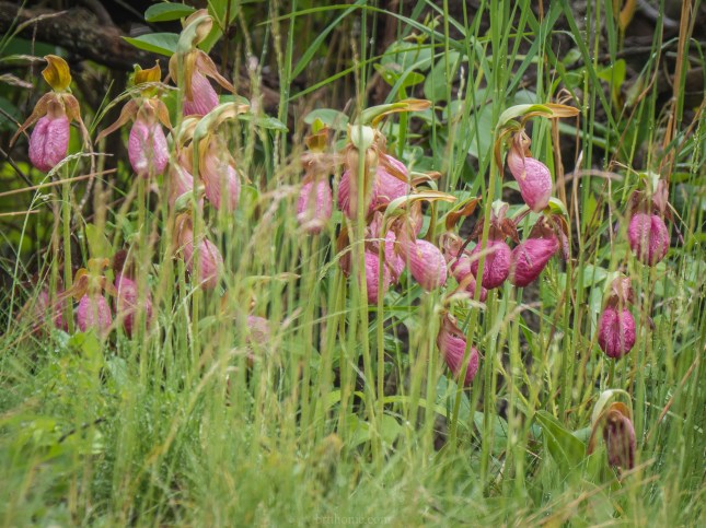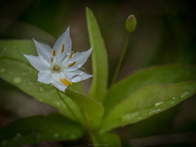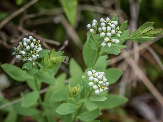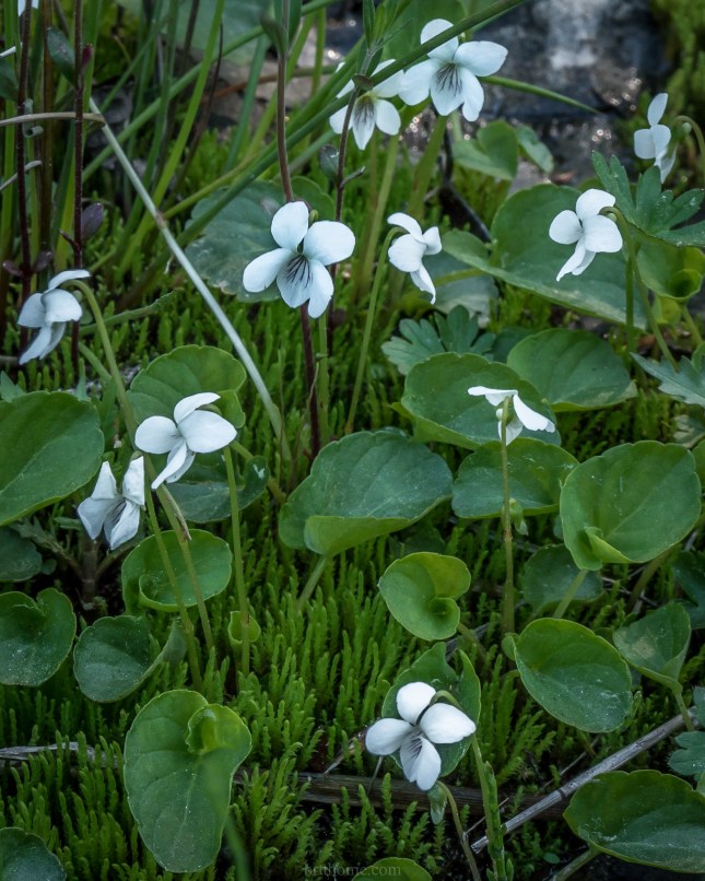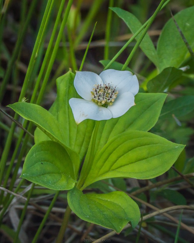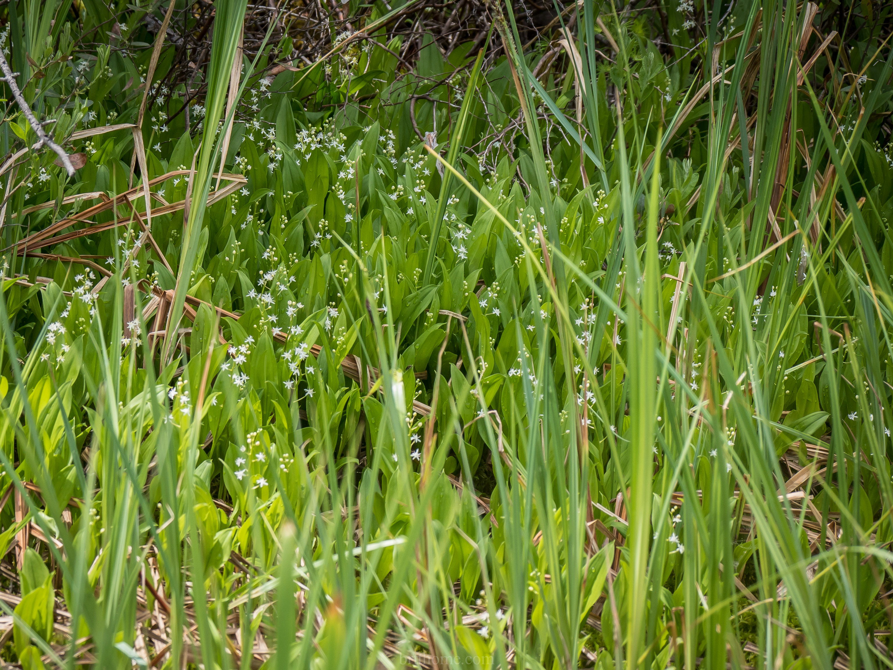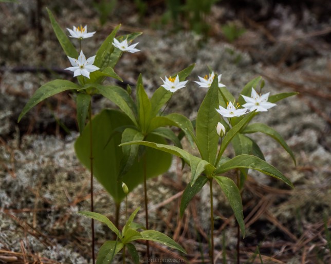 This early group of Clintonia borealis (commonly blue-bead lily or Clintonia, also Clinton’s lily, corn Lily, cow tongue, yellow beadlily, yellow bluebeadlily, snakeberry, dogberry, and straw lily) was blooming along 529A on the way to Bayfield Inlet…