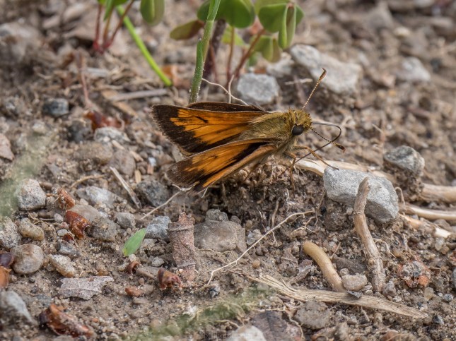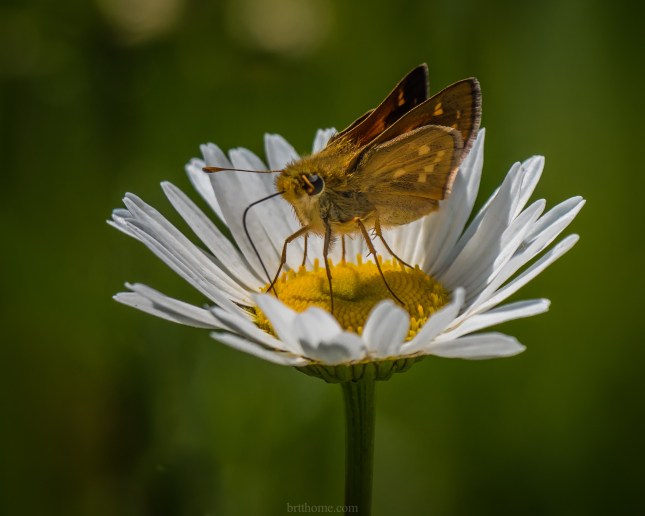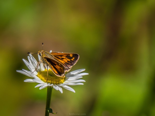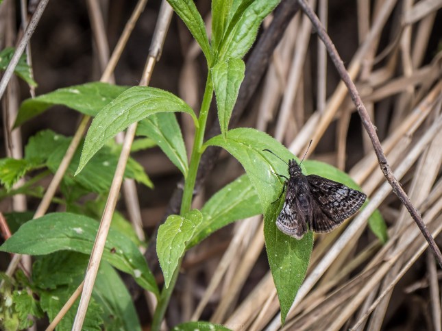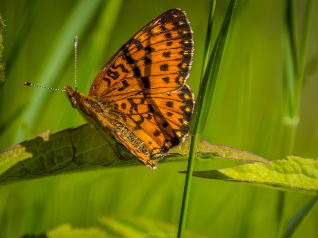 This ( Silver-Bordered ?) Fritillary is resting on a leaf, after bobbing about through the grass …