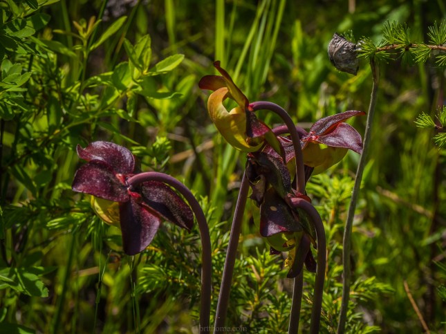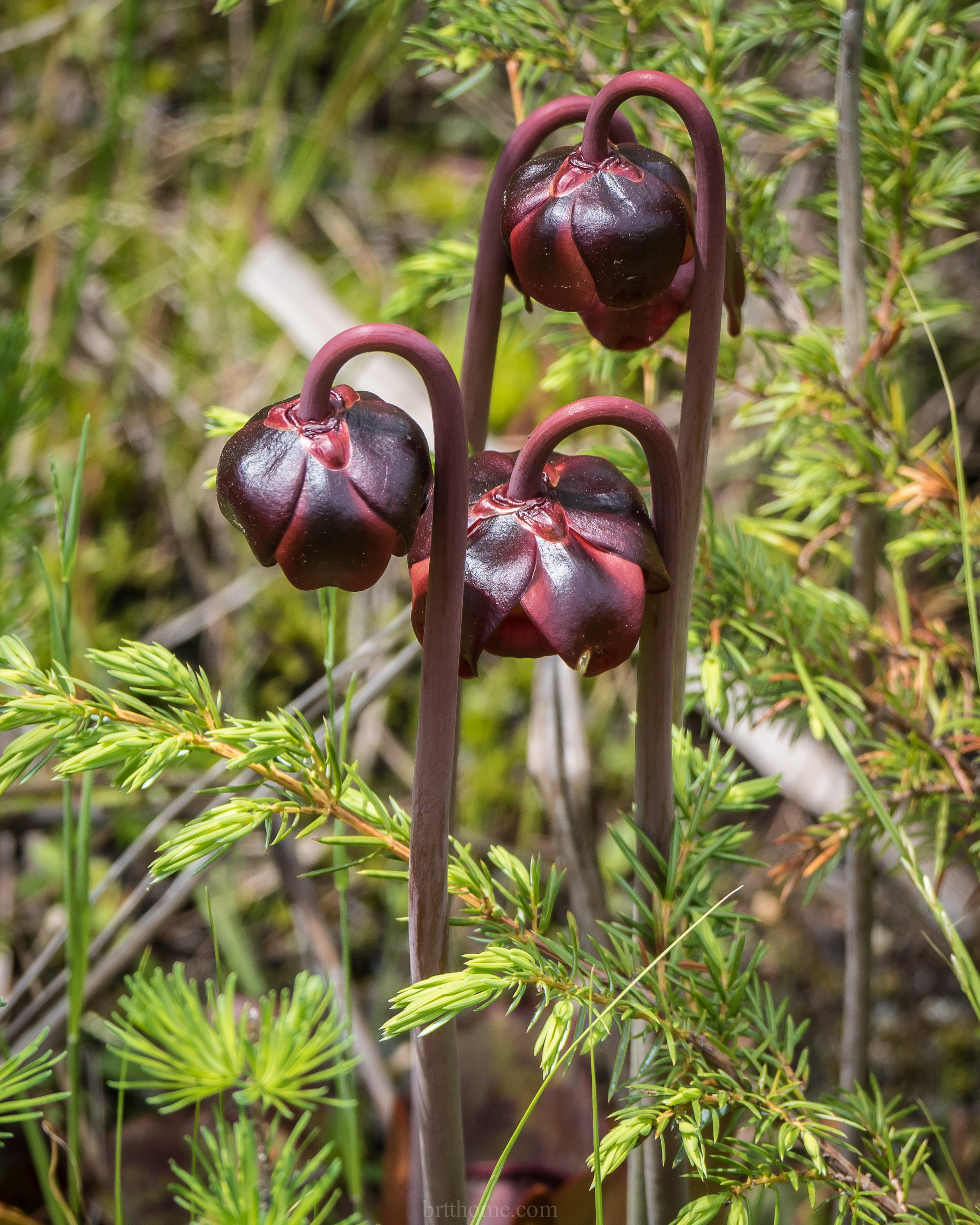 Like other species of Sarracenia, S. purpurea obtains most of its nutrients through prey capture.[4] However, prey acquisition is said to be inefficient, with less than 1% of the visiting prey captured within the pitcher.[5] Even so, anecdotal evidence by growers often shows that pitchers quickly fill up with prey during the warm summer months. Prey fall into the pitcher and drown in the rainwater that collects in the base of each leaf.
