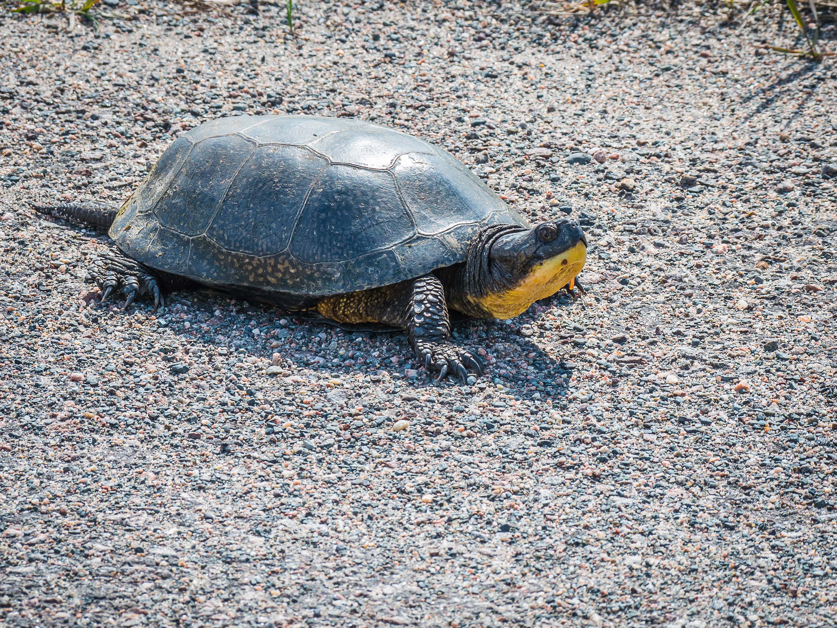 And, finally, here is a Blanding’s Turtle showing its bright yellow/orange throat while crossing Hwy 529.