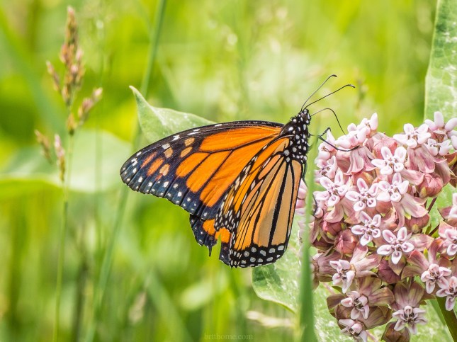 This uncommon Harris Checkerspot nectared on milkweeds…
