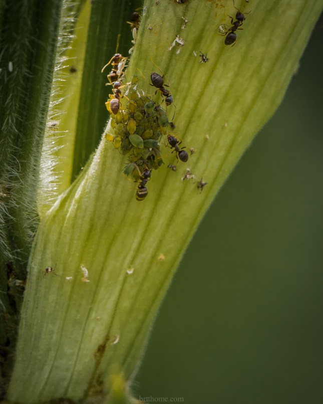 Ants are tending to their collection of green aphids: An interesting example of primitive dairy-farming…..