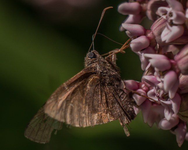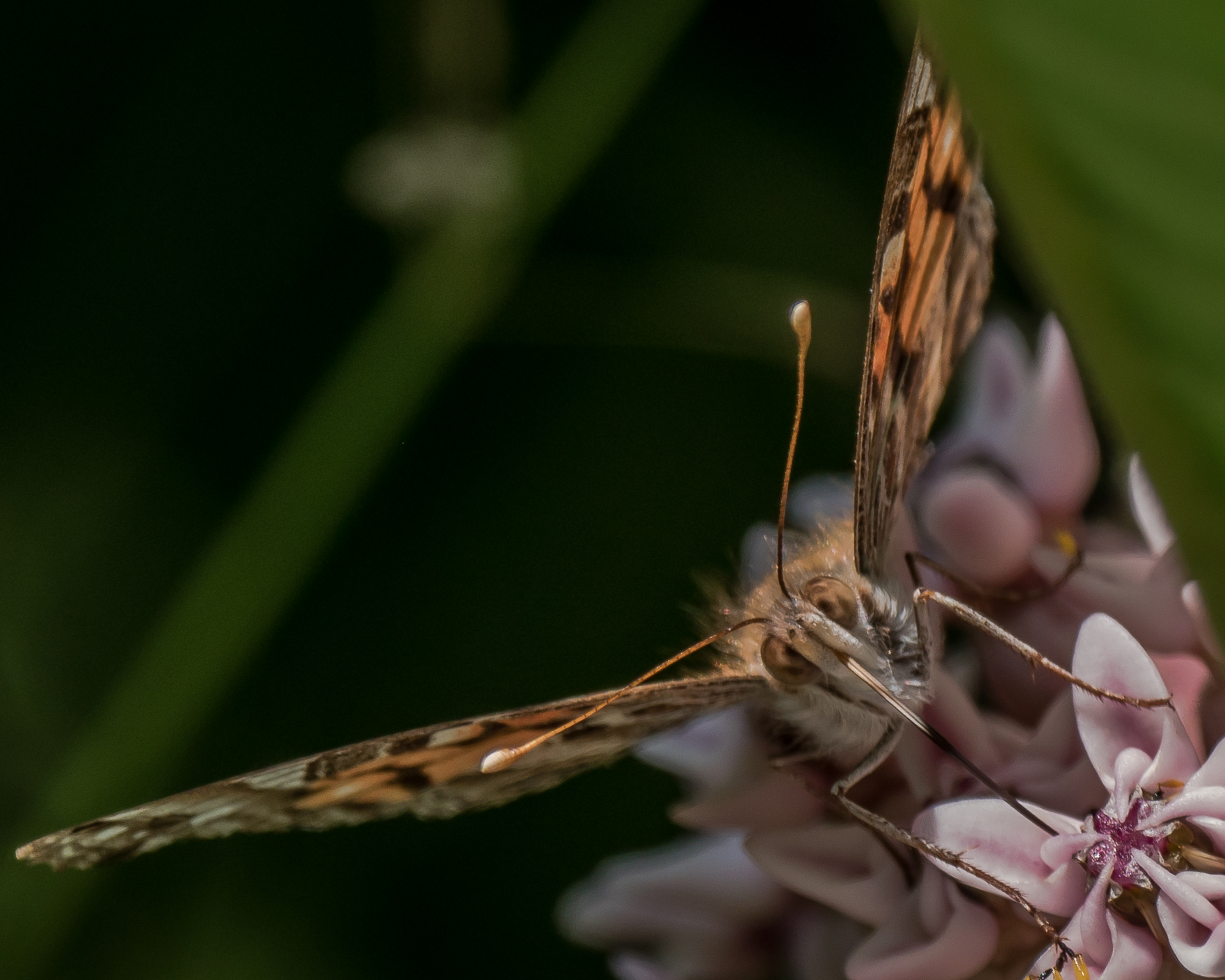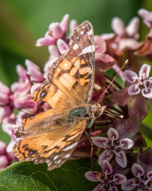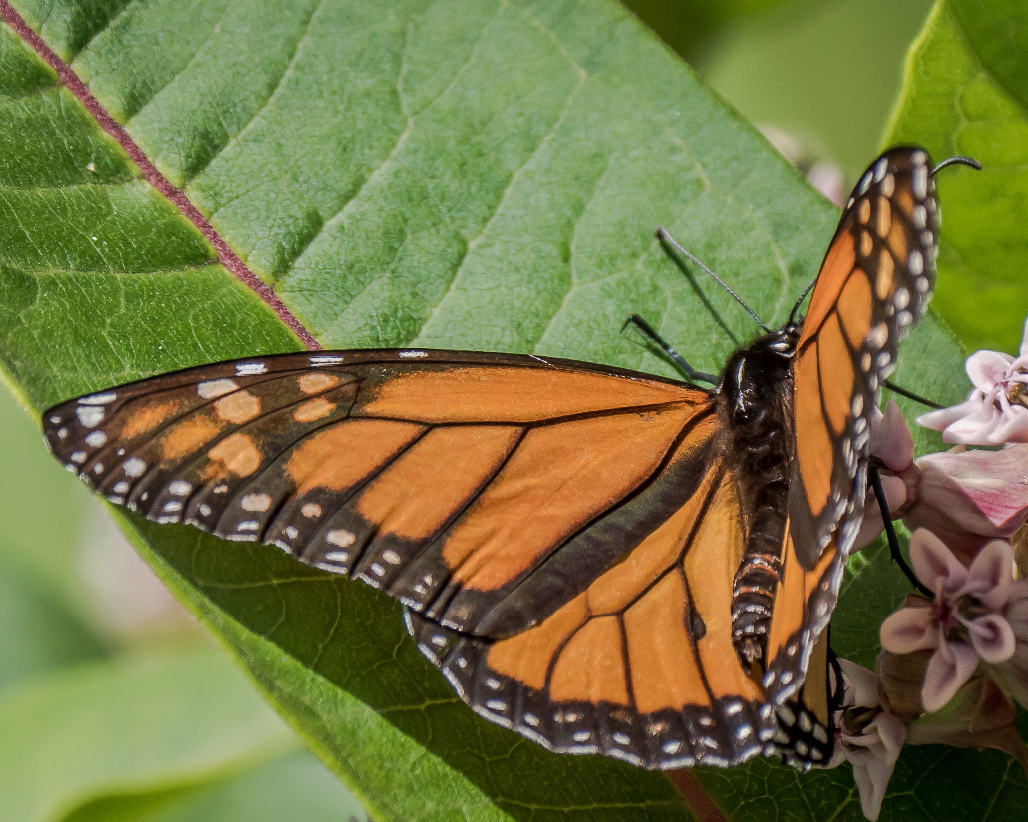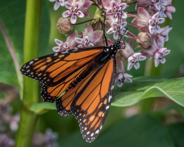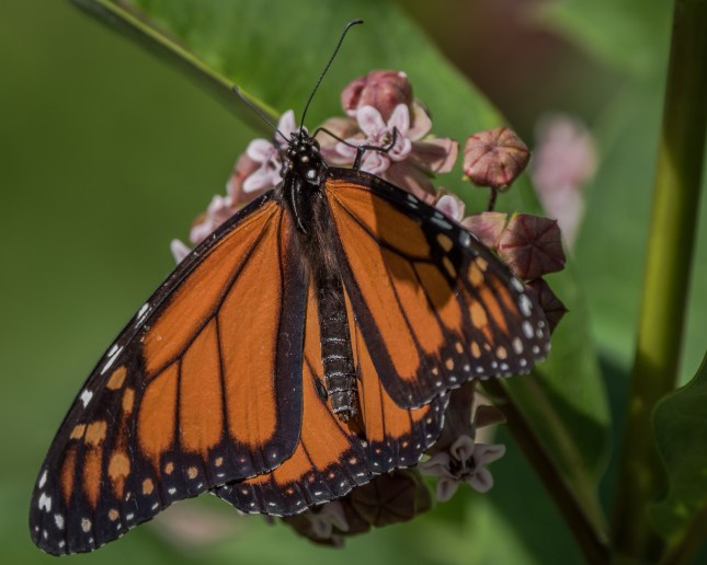Another male Monarch nectaring at the milkweed patch at “Reno’s Corner” on Riverside Road.