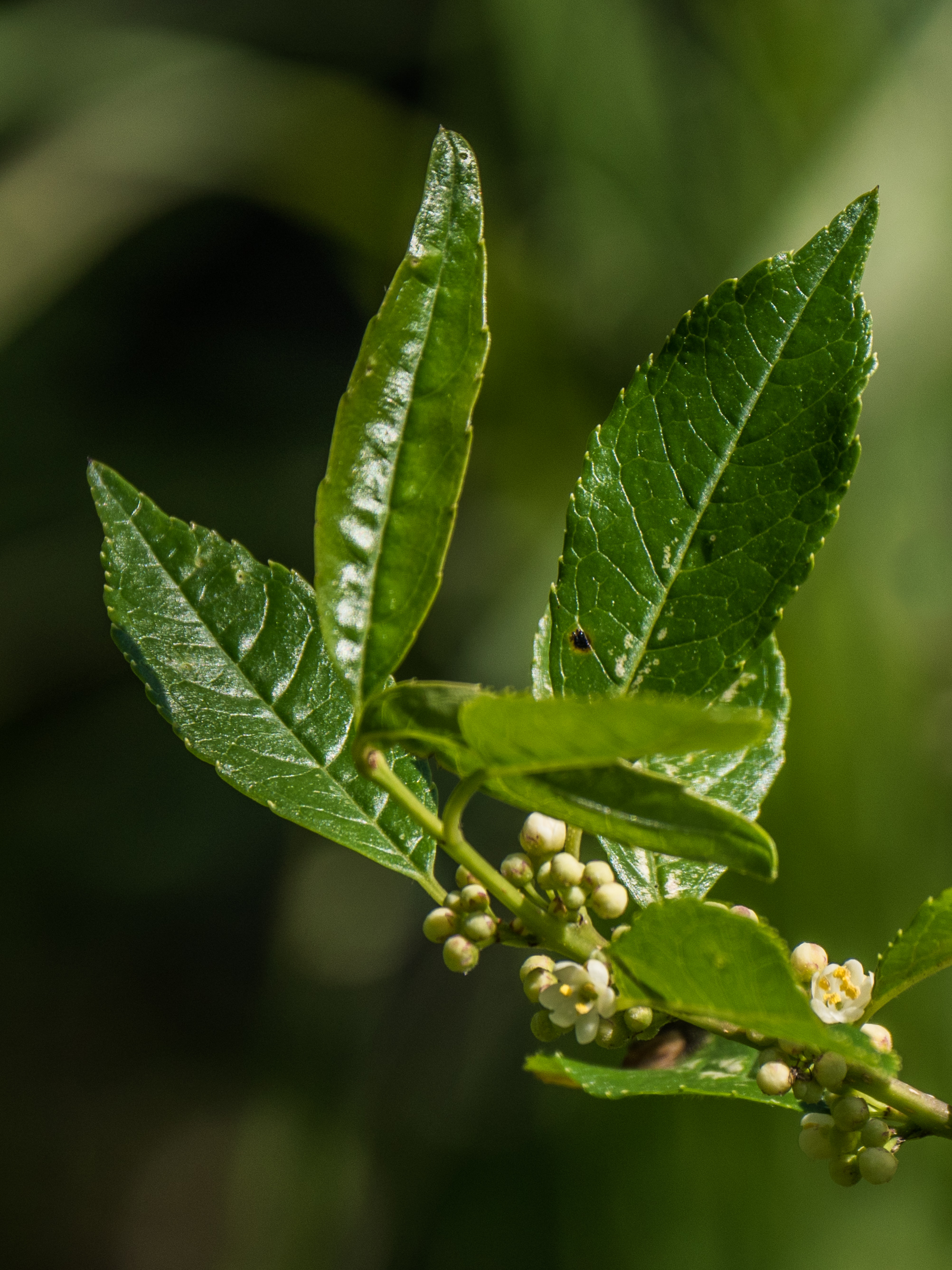 From Andy’s Northern Ontario Wildflowers: Winterberry Holly; deciduous, erect, holly shrub; are male and female shrubs; also known as Winterberry, Fever Bush, Striped Alder, White Alder, Coralberry, Michigan Holly, False Alder, Inkberry, Black Alder Winterberry, Deciduous Winterberry, Virginian Winterberry, Brook Alder, Deciduous Holly, Possumhaw, Swamp Holly.