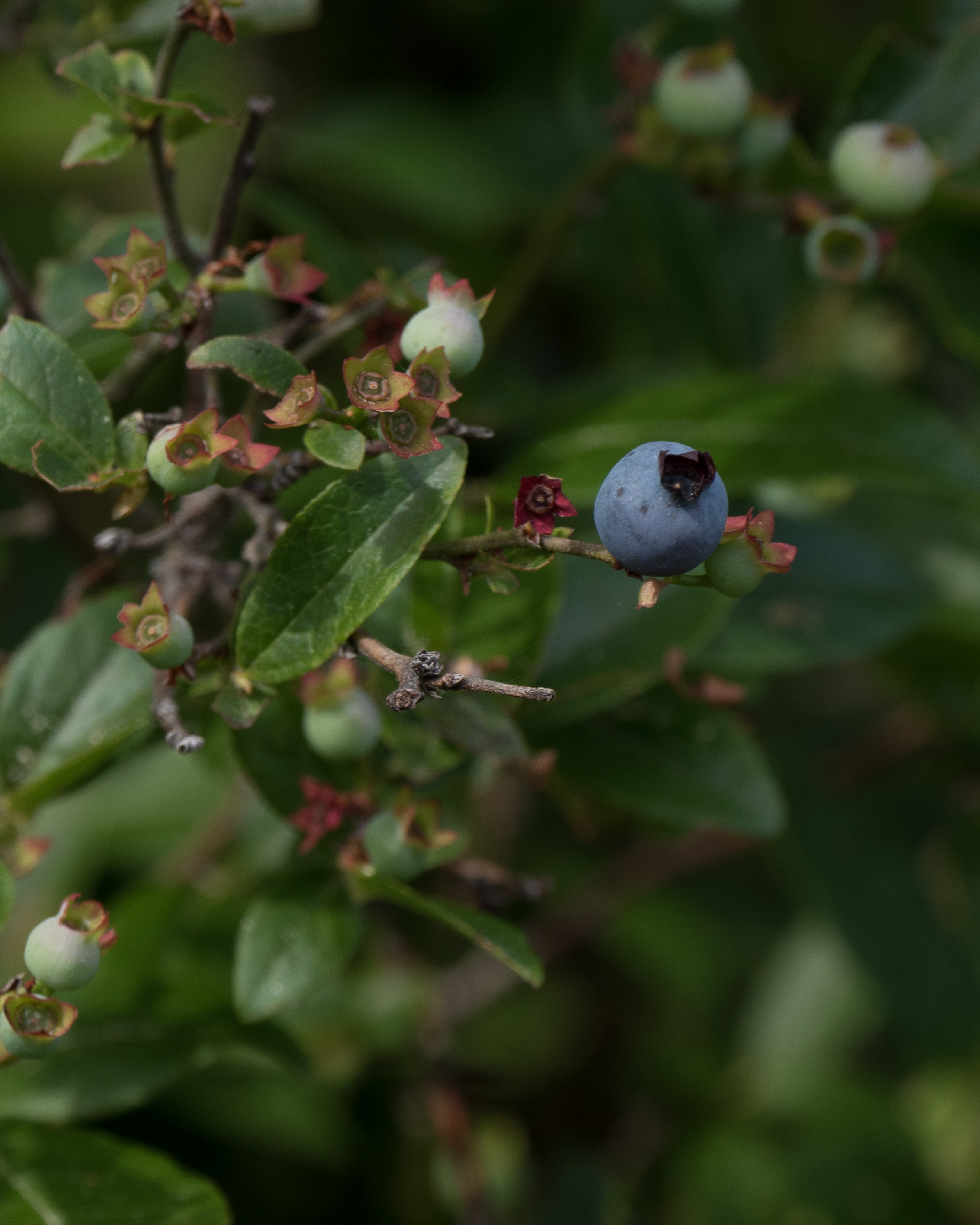 Some critter(s) have been harvesting these blueberries. And Pink Edged Sulphurs have been laying eggs on the leaves of these Vaccinium.