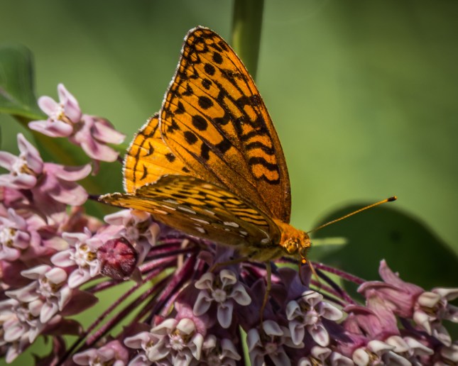 Great Spangled Fritillaries were abundant on the milkweeds.
