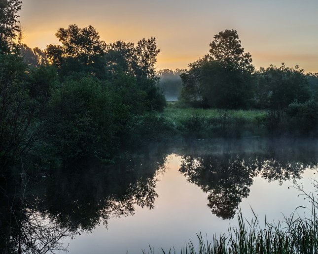 Before their arrival I warmed up the camera by visiting some nice spots as the sun was rising through the morning fog. Here is the Still River at St Amants Corner at 6:02 am: