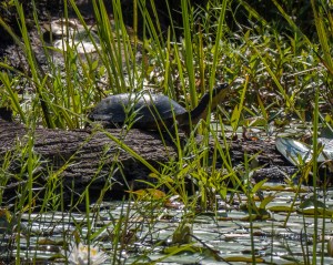A partially hidden Blanding’s Turtle in the Big Pond across the road from Big Lake….
