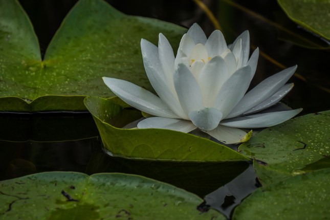 A Frosted Whiteface is munching on some food while resting on a lily pad…